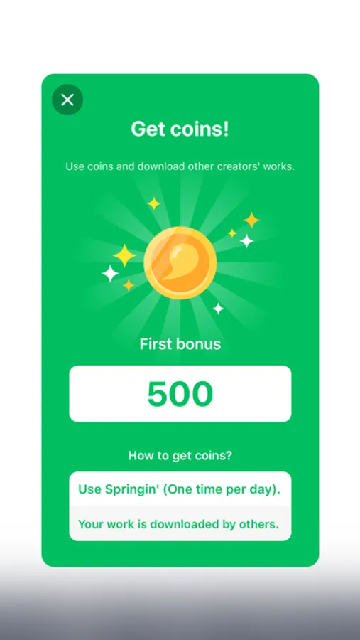 Upload your proud work on the market, share it to everyone in the world and get evaluation= coins. You can get information on how many downloads and plays.