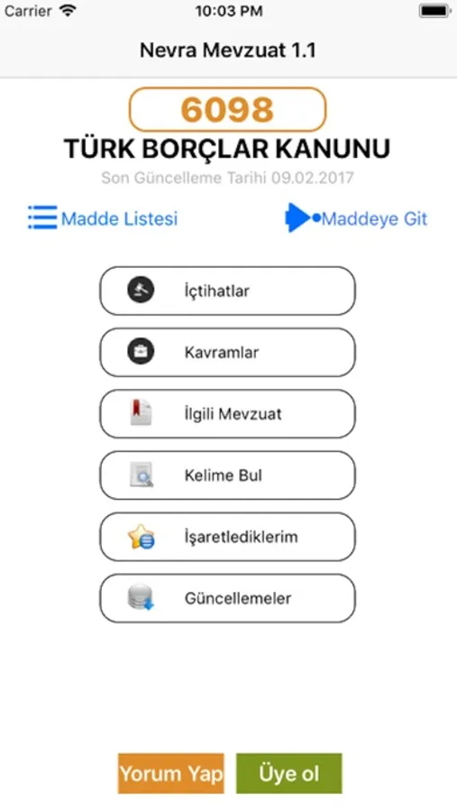 Uygulama içerisinde Borçlar kanunu ile ilgili mevzuat, kanun maddeleri ile ilgili içtihatlar da yer almaktadır.