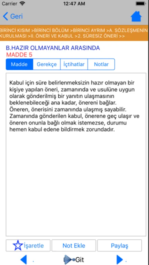 1- Yıldız işaretine basarak Kanun maddesini işaretleyip İşaretlediklerim menüsünden hızlıca ulaşabilirsiniz.