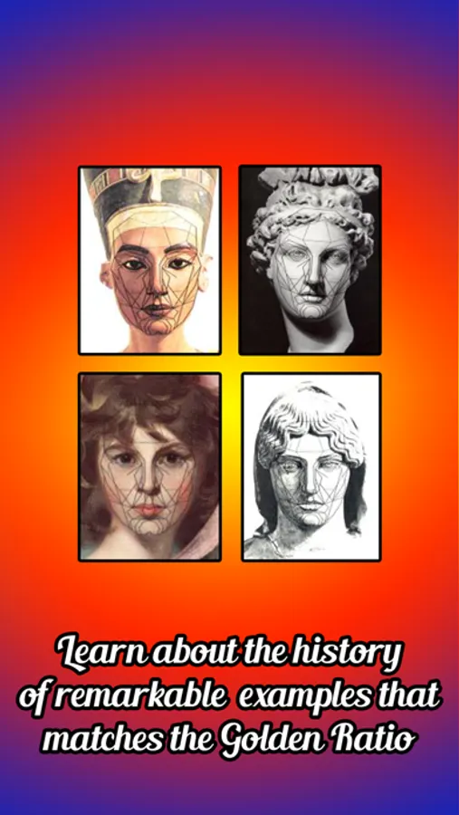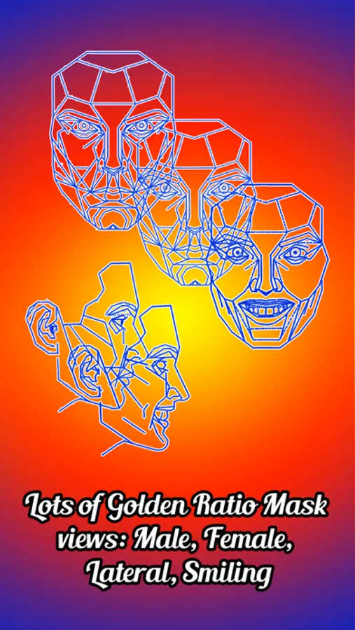 This app explains the ratio itself, tell you about the story, show some remarkable examples and creates a Golden Ratio Mask over your front-facing camera, with different overlay options to customize it according to you (male, female, smiling, lateral and lateral smiling mask) to show how close you are to these harmonic proportions.