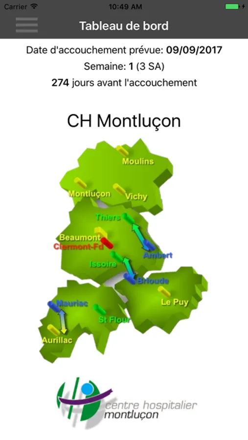 - un tableau de bord : date d’accouchement prévue, nombre de semaines écoulées, nombre de jours avant l’accouchement