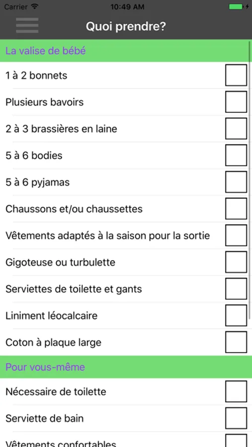 - des renseignements pratiques : congé maternité, composition de la valise de bébé, recommandations pour optimiser la grossesse.