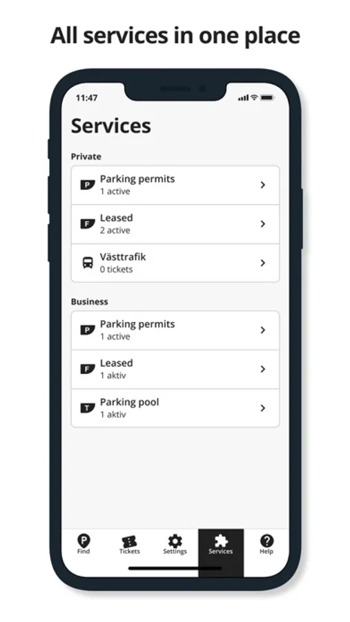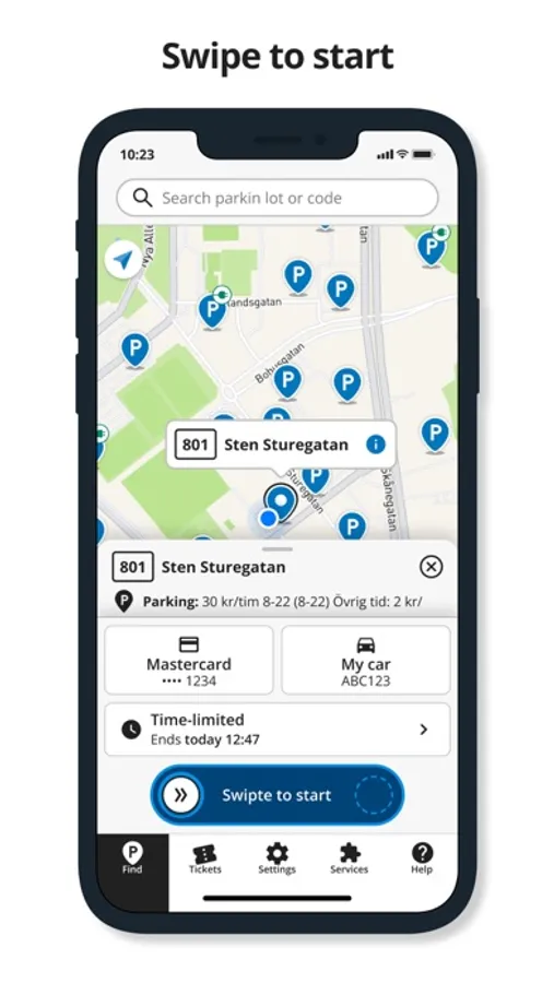 The app can be used on the parking spaces marked with the Göteborg Stads parkeringsbolag.