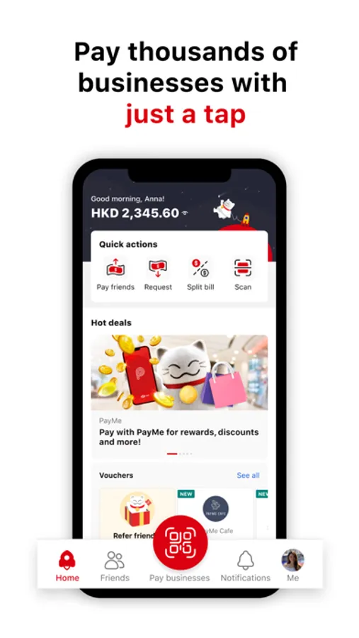 Split restaurant bills with friends in just a few taps, pay businesses large and small with more than 40,000 outlets already accepting PayMe across Hong Kong.