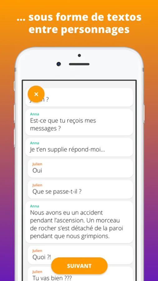 Une "Chat Story" est une histoire courte racontée sous forme de conversation entre des personnages. Soyez spectateur de l'histoire racontée comme si vous espionniez une conversation ou un chat sur smartphone, et tapez sur "Suivant" pour voir la prochaine réplique. Vous allez être surpris... Des dizaines d'histoires courtes vous attendent, avec de nouveaux épisodes tous les jours. Lisez où vous voulez, quand vous voulez, en ligne et hors ligne.