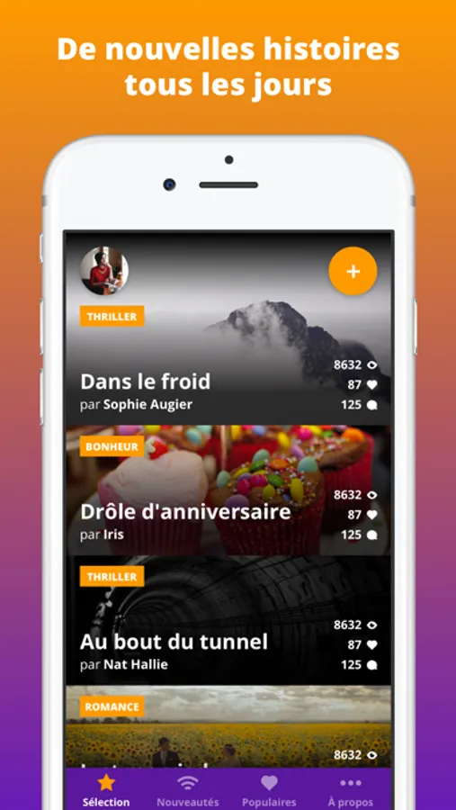 De nouvelles histoires tous les jours, 100% gratuites, pour vous faire vibrer en moins de cinq minutes...