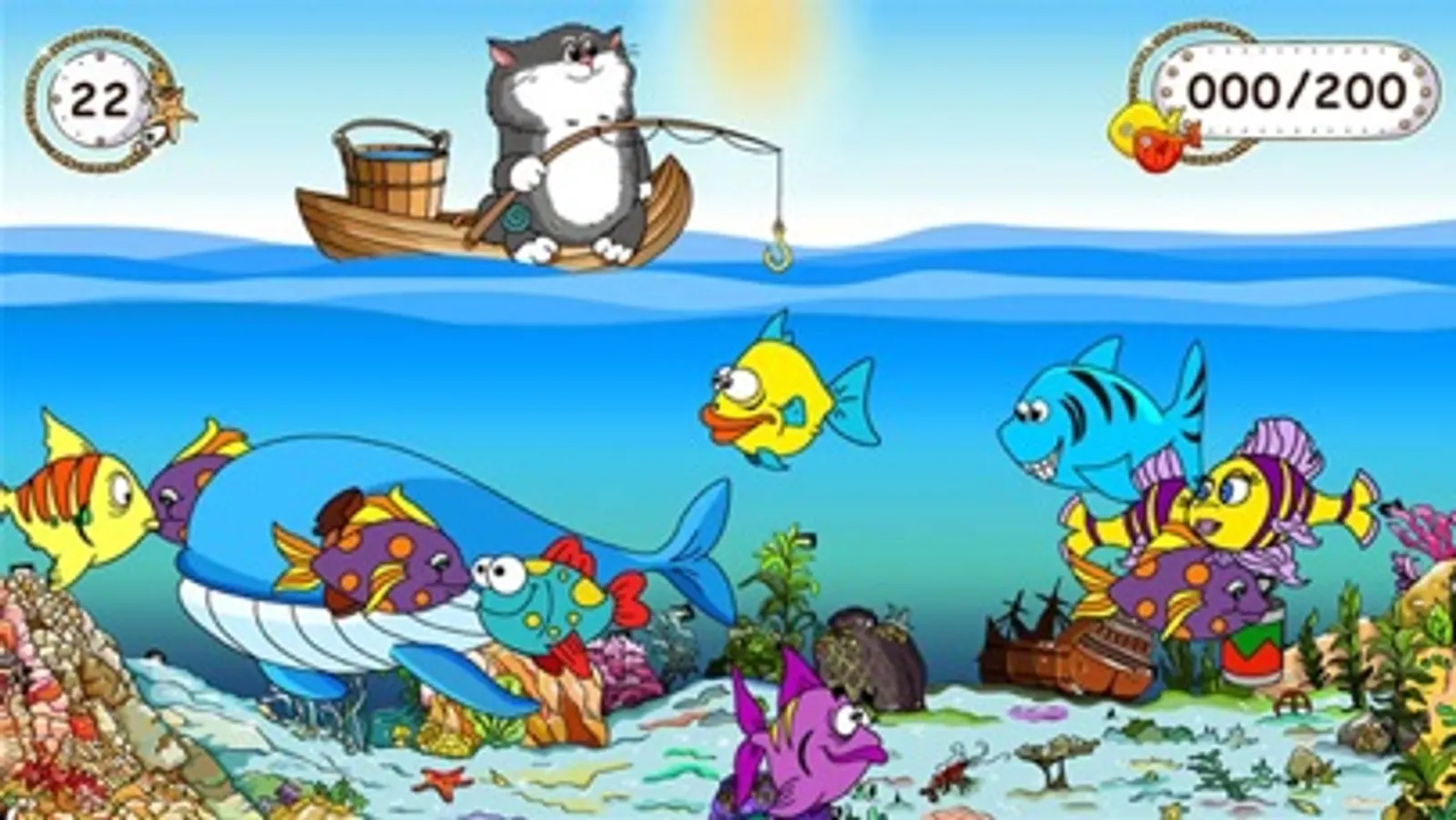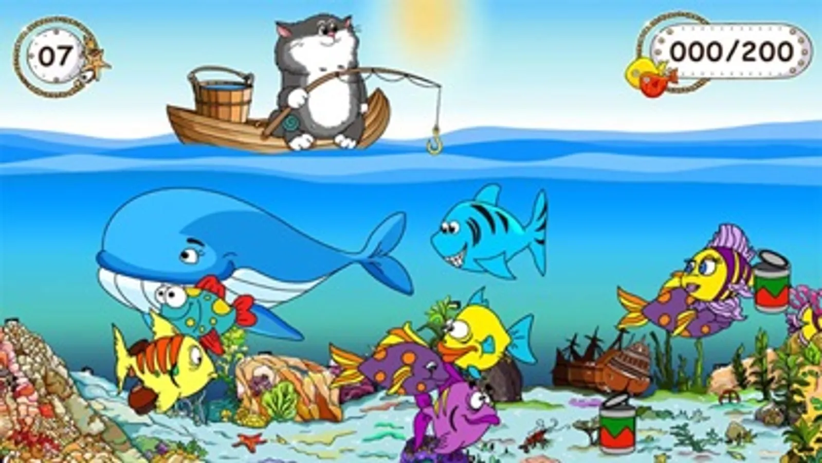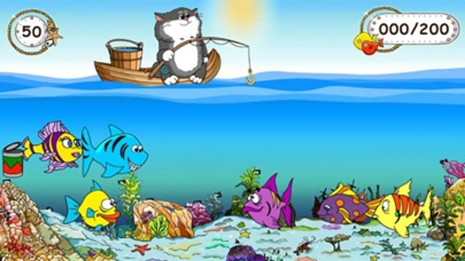 In this game you have to go on a fishing trip. The goal of the game for baby is simple - you need to catch as many fish and collect the required number of points to pass the level. For each caught a fish you'll get points. But if you are caught on a hook shoe tin or a dangerous predator - the points will be reduced.