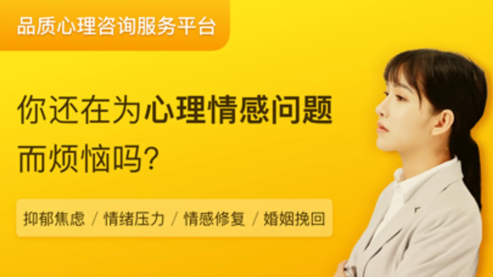 中科院心理专家领衔,严选上万名资深情感修复专家、亲子教育专家、婚姻家庭问题专家等各个领域专业心理咨询师的一站式心理问题服务平台,为您提供婚恋情感咨询、情绪压力、亲子关系、人际交往、抑郁症、焦虑症、强迫症等各类问题的专业解决方案。线上和线下双结合,让心理咨询服务触手可及,更将心理健康服务惠及每一位大众,心理咨询一直致力于提升大众的心理健康水平。