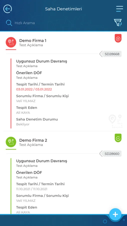 Ortak Sağlık Güvenlik Birimleri tarafından sahada gerçekleştirilen denetimlerin mobil cihazlarla yapılması için tasarlanmış bir uygulamadır. Sahada internet yokken veri ve fotoğraflar kullanıcının mobil cihazında saklanır. İnternet erişimi sağlandığında bu bilgiler OSGB sunucusuna aktarılır. Çalışmalara gelişmiş web ekranlardan devam edilebilir.Cihazdaki kayıtlar PDF e dönüştürülerek diğer kişilerle paylaşılabilir.