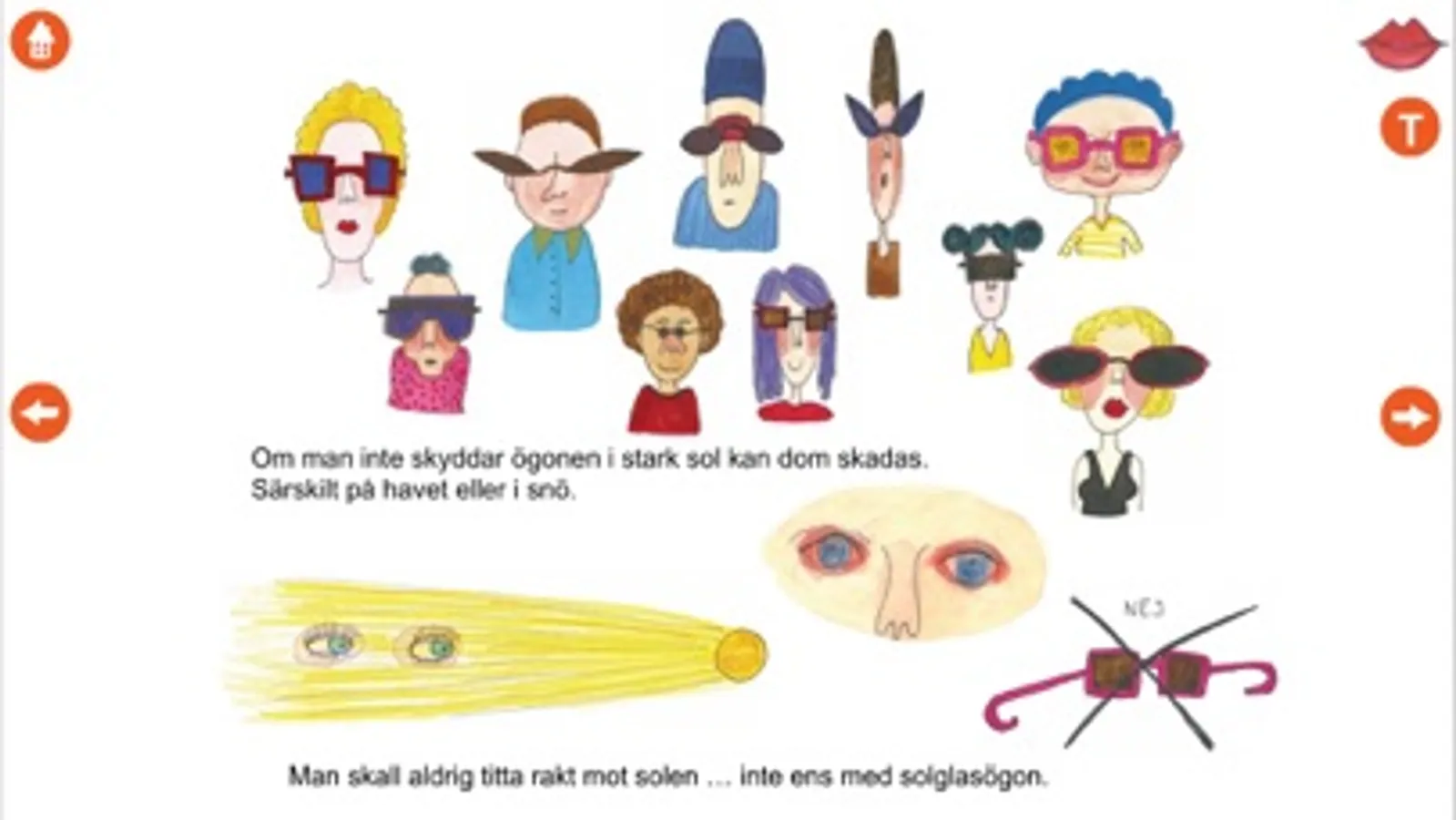 - Vuxna och äldre barn kan läsa ”Solboken” tillsammans med yngre barn som får klicka, dra, lyssna och bläddra sig fram i appen.