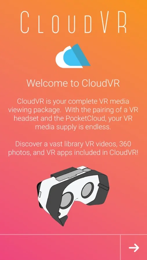 **The CloudVR app requires the PocketCloud device and the CloudVR headset**
