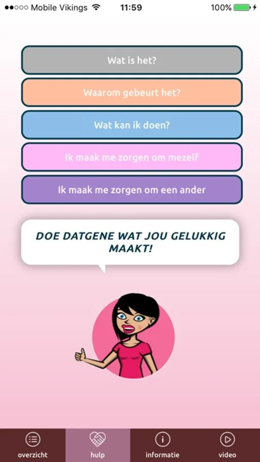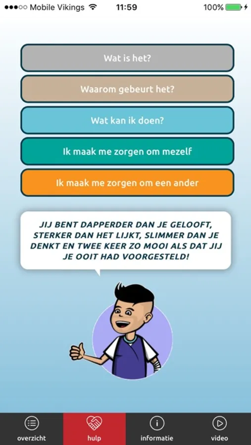 Care-Free is een app over kindermishandeling voor jongeren van 10 jaar en ouder. Wil jij meer weten over wat kindermishandeling is? Wil je meer weten over hoe je dit bespreekbaar kan maken als je je zorgen maakt over jezelf of over een ander? Of wil je weten waarom het gebeurt? Dan kun je de Care-Free app gratis en anoniem gebruiken en zelf bepalen of je er iets mee wilt doen.