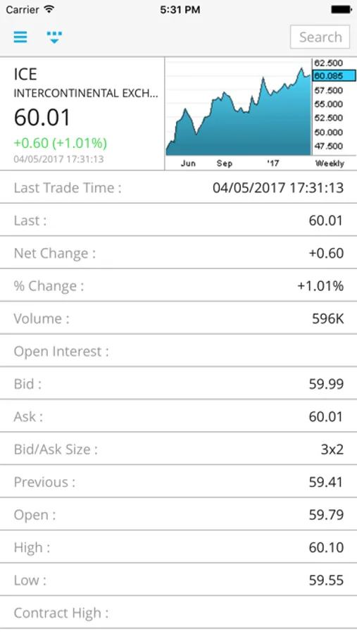 The ICE Connect mobile apps allow subscribers access to the same streaming financial market pricing data, historical pricing data, fundamental data, news, charting, analytics found through its desktop counterpart. ICE Connect portability provides a continuous cross device experience bringing your watchlists, filters and other shared preferences where ever you choose to access ICE Connect.