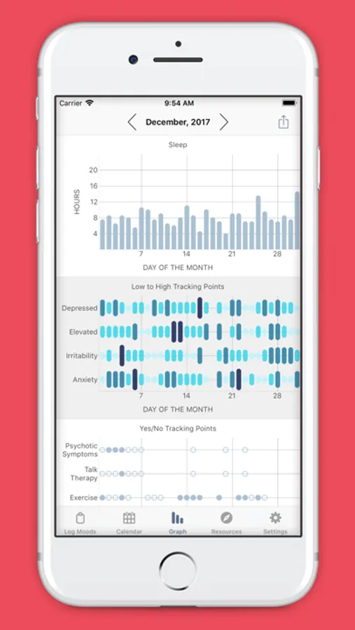 - Easily chart your daily highs and lows, sleep, medications, and other symptoms related to common mood disorders like Bipolar/Manic Depressive illness, Depression, and Anxiety.