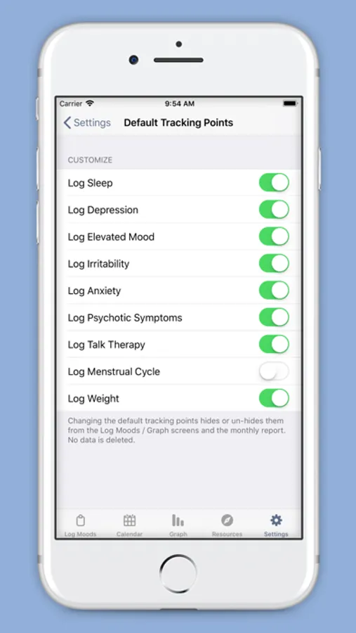 Your privacy matters! eMoods never stores any of your data in the cloud or connects to any APIs. No data leaves your phone without your explicit action.