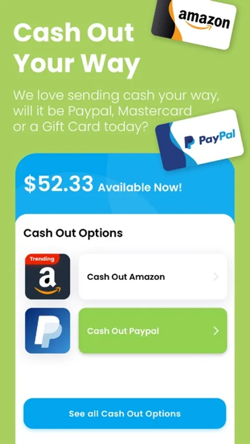 Once you reach $10.00 in your account balance, you will be able to cash out via PayPal, Amazon eGift Card, Mastercard eGift Card, and many more eGift Card options! And yes, you can cash out more than once!