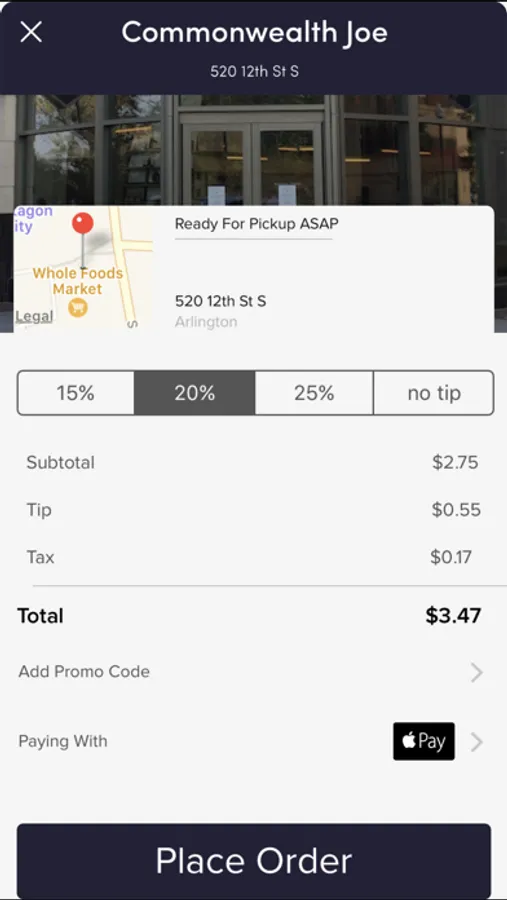- Order & Pay - use Apple Pay or a saved credit/debit card