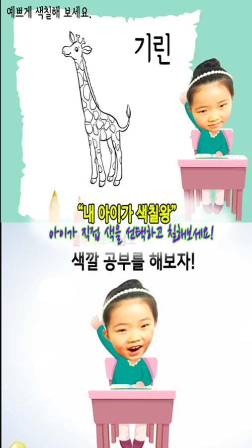 스마트폰 속에서 아이가 직접 색을 선택하고 칠해보세요!