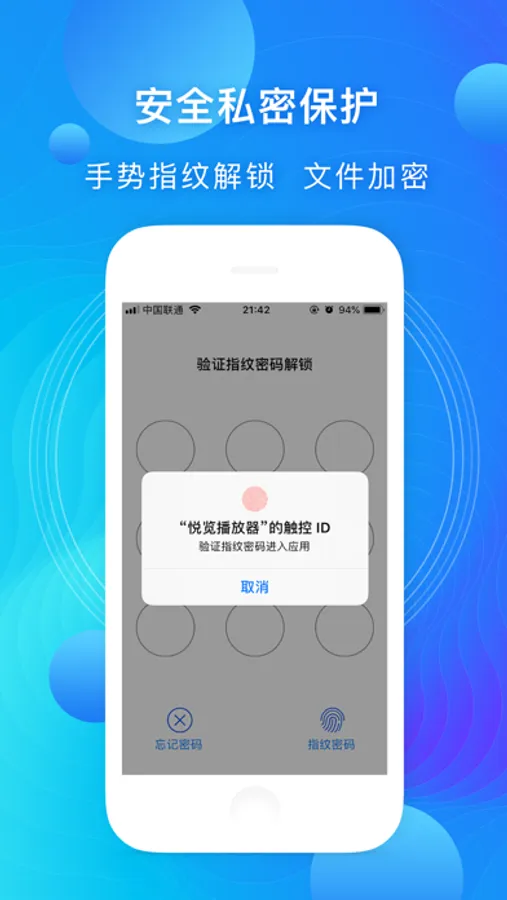 ● Fingerprint password, gesture password unlock, provide privacy protection.