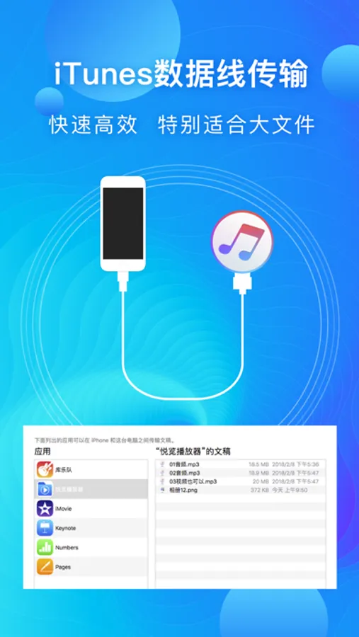● Local area network wireless transmission, iTunes data line transmission, mobile phone face to face transmission.