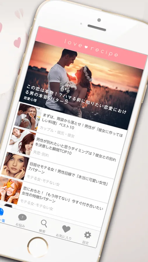 恋に恋する女性、出会いを求めている女性、彼の気持ちに不安を感じている女性、彼との愛をもっと深めたい女性・・・恋愛レシピは、そんな恋するすべての女性を応援!幅広いジャンルの記事で、恋の疑問やお悩みをすべて解決します!