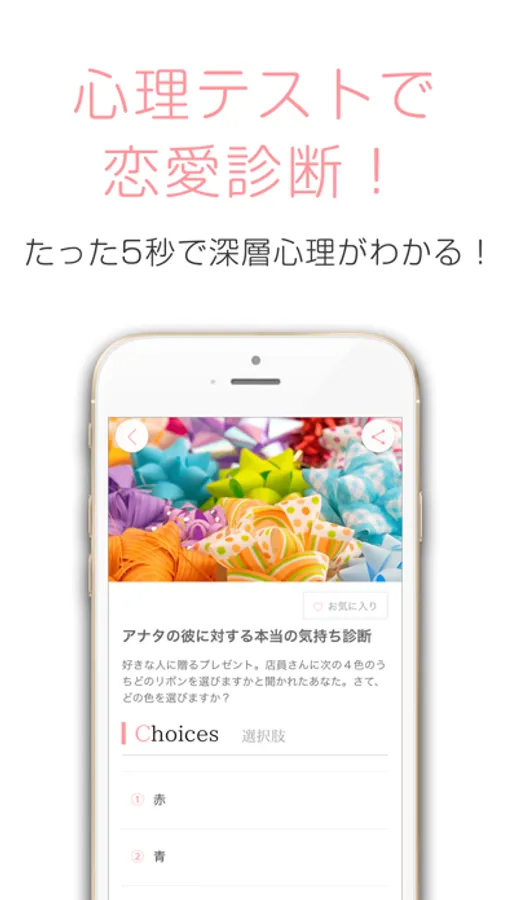 あなたの深層心理に迫り、恋愛傾向や恋愛行動、性格などをズバリ診断します。