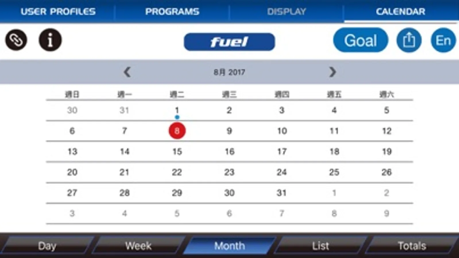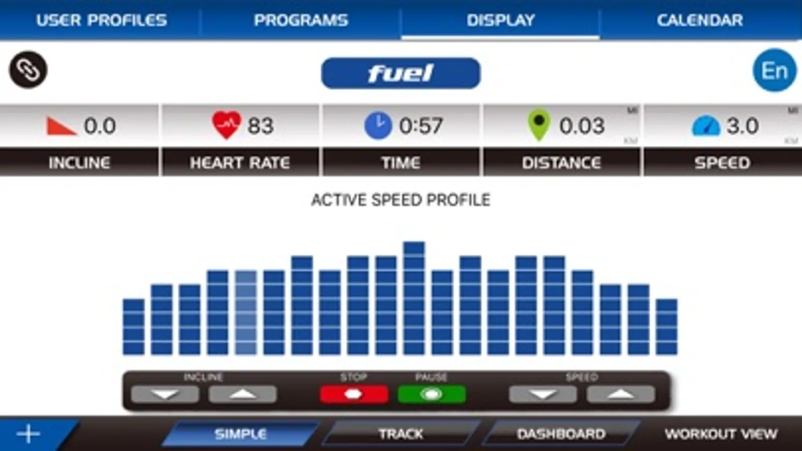 Fuel Fitness App connects to your Treadmill, Bike or Elliptical via Bluetooth. You can view current workout data in three different Display screens on your device. Easily switch back and forth from the workout display view to internet/social media/email sites via icons on the display screen. When your workout is finished, the data is automatically uploaded to your personal calendar for future reference.