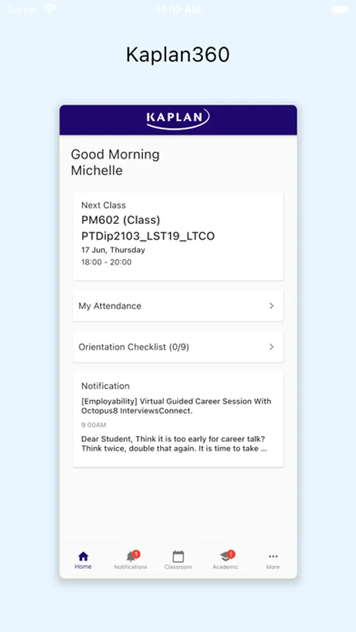 Kaplan360 lets students access student support services and updated course information anytime, anywhere.