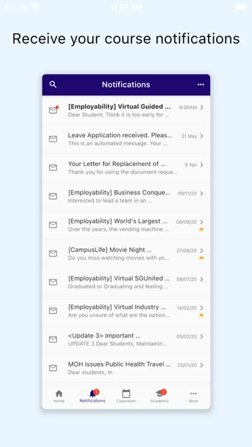 - Receive your course notifications