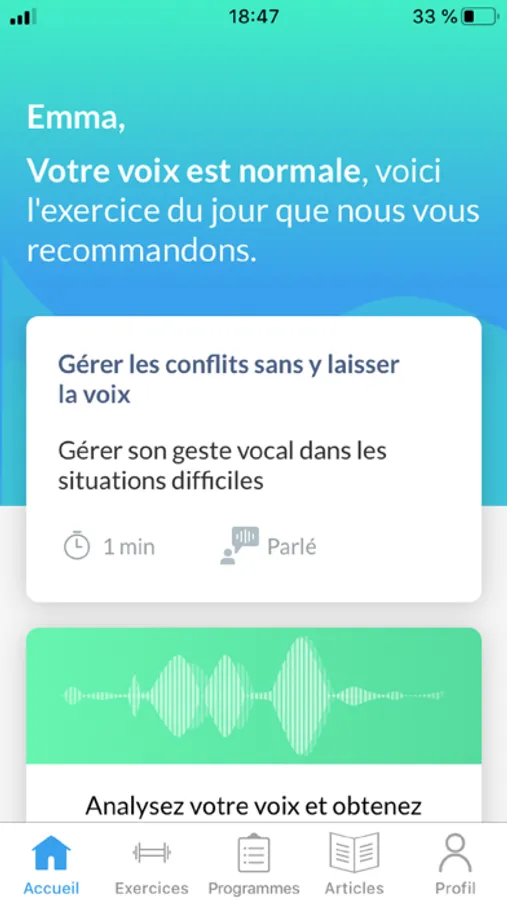 Grâce à l’application de coaching Vocal‘iz, prenez soin de votre voix de la même manière que vous prenez soin de votre santé.