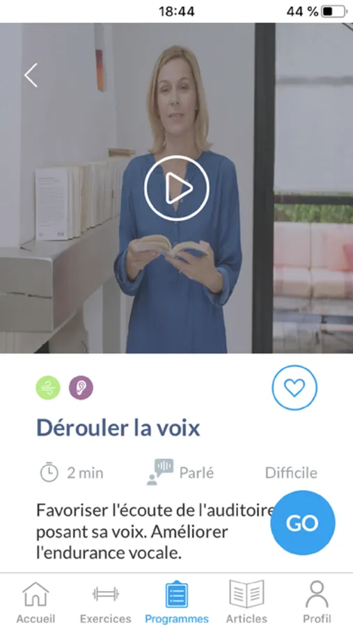 Prenez soin de votre voix grâce à plus de 60 exercices que nous avons créés en collaboration avec des professionnels de santé. Des exercices pour travailler et poser votre voix, mais aussi votre souffle, votre posture, votre articulation… Car la santé vocale passe aussi par-là !