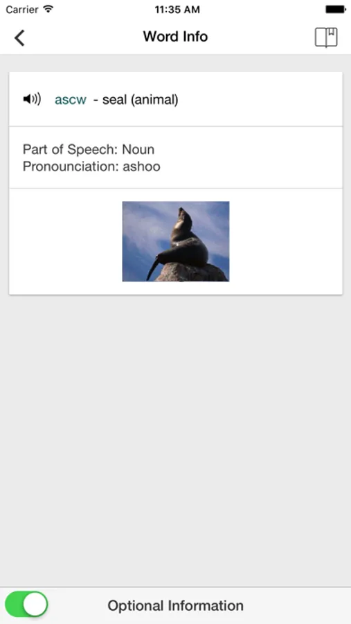 The Ucwalmicwts app is a media-rich bilingual dictionary and phrase collection comprised of words and phrases archived at the online Aboriginal language database FirstVoices.com. Word and phrase definitions are illustrated with audio recordings, and images. Users can generate their own thematically organized flashcards and bookmark words or sentences to create their own lists.