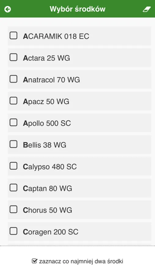 Aplikacja pełni funkcję doradczą przy doborze komponentów do jednoczesnego stosowania. Nie wolno jej traktować jako autorytatywną opinię.