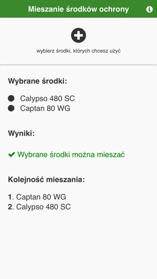 Aplikacja pozwala na szybkie i wygodne sprawdzenie czy dowolne środki ochrony roślin można ze sobą mieszać. Nie wymaga od użytkownika sprawdzania danych w tzw. tabeli mieszania. Zawiera też szereg innych porad niezbędnych do przygotowania bezpiecznej mieszaniny środków ochrony roślin.