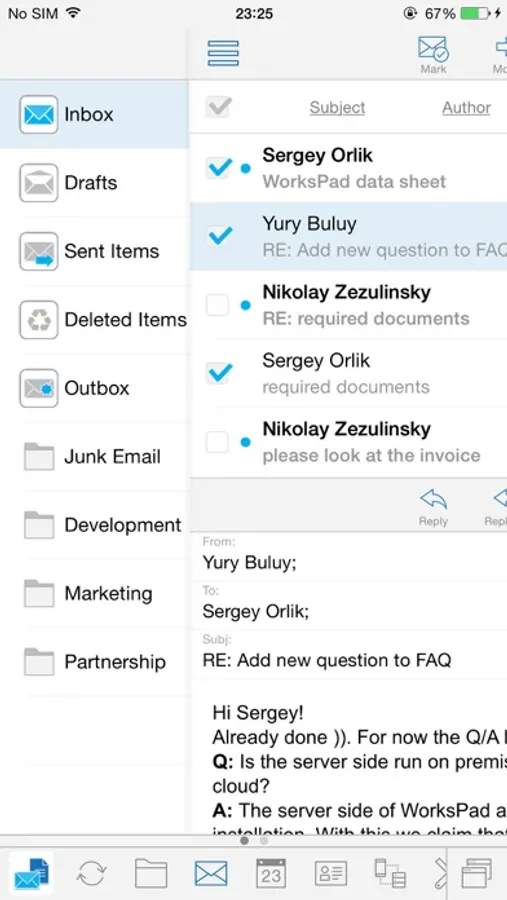 To work with Microsoft Exchange via WorksPad server you need to use app edition “WorksPad”.
