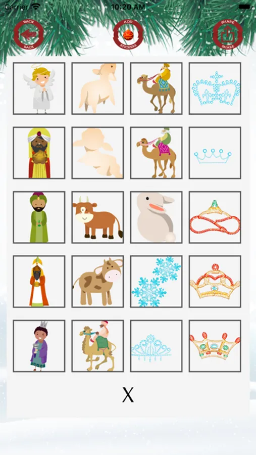 - Select the stickers you want to put on the nativity portal and place them with your fingers.