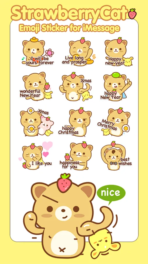 Strawberry Cat cute sticker that can express a very unique variety of emotions.