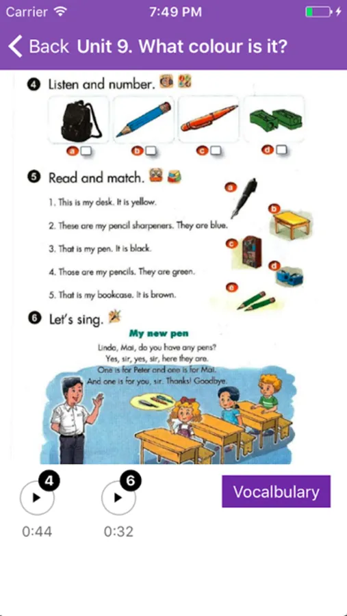 - Bấm vào các số bên dưới trang sách bạn sẽ nghe được nội dung của bài học đó.