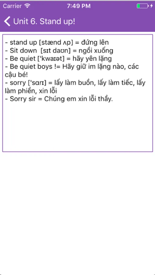 - Mỗi bài, mỗi phần có hình ảnh hiển thị cùng audio minh họa.