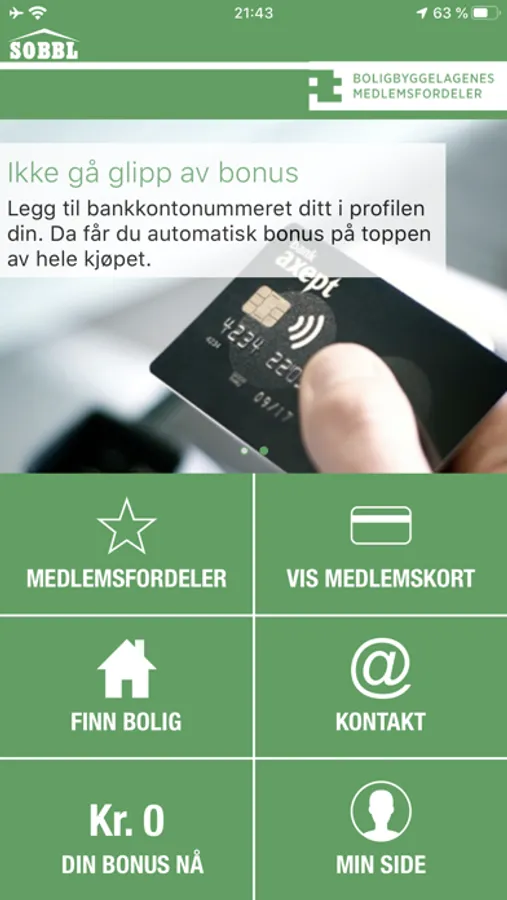 • Tilgang til medlemsbeviset, medlemsfordelene og bonusopptjening for SOBBL medlemmer