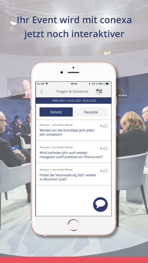 conexa begleitet Ihre Event mobil und flexibel. Profitieren Sie von mehr Gestaltungsspielraum im Veranstaltungsmanagement dank digitaler Tagungsunterlagen und interaktiver Informationsmöglichkeiten. Kurzfristige Änderungen oder brandaktuelle Neuigkeiten? Mit conexa halten Sie Ihre Besucher immer auf dem neuesten Stand – und das vor, während und nach der Veranstaltung. conexa schafft die Plattform für ein persönliches, interaktives und verbindendes Konferenzerlebnis: Mit individueller Agenda, direkten Feedback-Optionen und vielfältigen Vernetzungsmöglichkeiten.