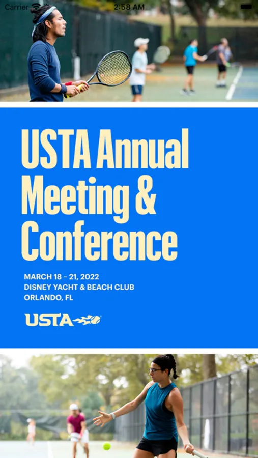 The United States Tennis Association, Inc. (USTA) hosts 3-4 meetings yearly for tennis professionals, volunteers and staff members. These meetings include: Annual Meeting & Conference, Leadership Meeting, Semiannual Meeting & Conference, Tennis Development Workshop and the Tennis Teachers Conference. Once the USTA Meetings application is downloaded, attendees are able to access conference information, schedule, speaker biography information, maps and attendee contact information.
