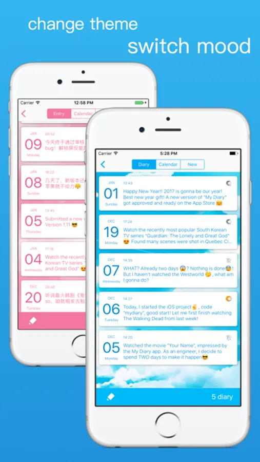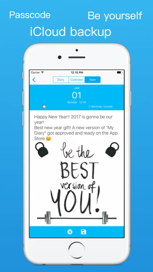 - TouchID/Passcode to protect your diary