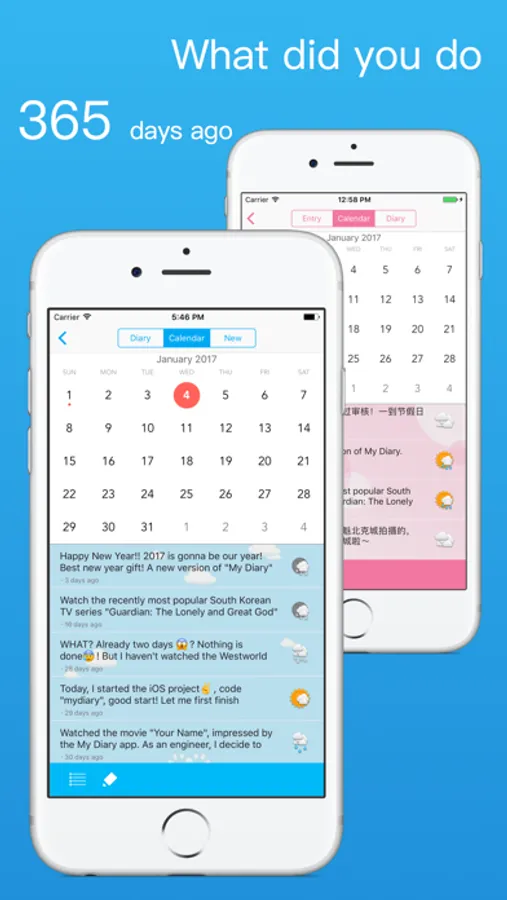 - Calendar view for browsing a diary