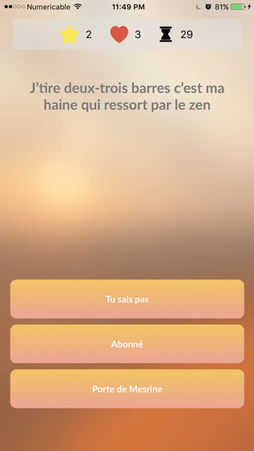 La règle est simple : Une punchline, trois choix, tu dois trouver de quelle track elle provient. Tu as 30 secondes pour en trouver le plus possible !