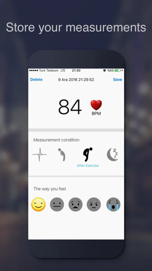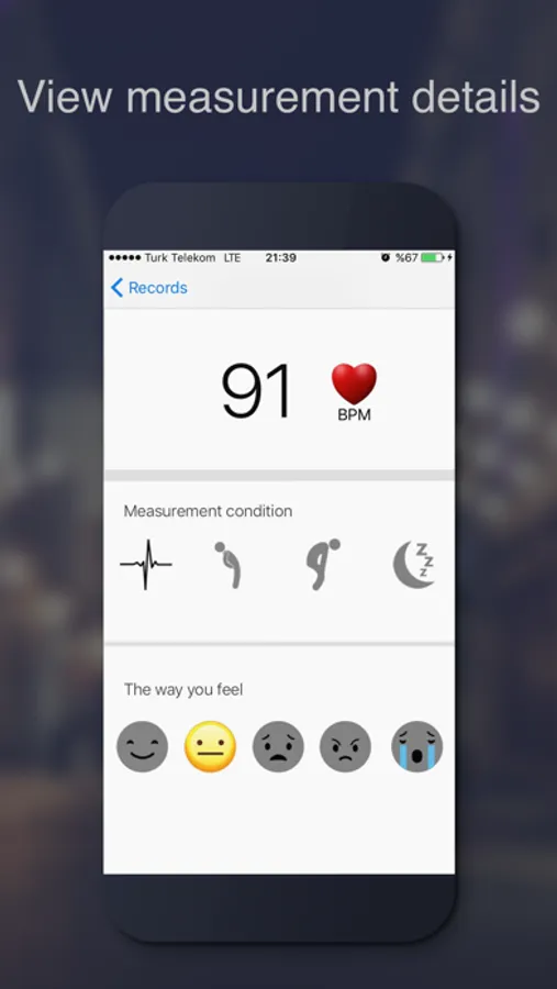 This app detects a color change in your finger tip each time your heart beats and uses an advanced algorithm to show you your heart rate.