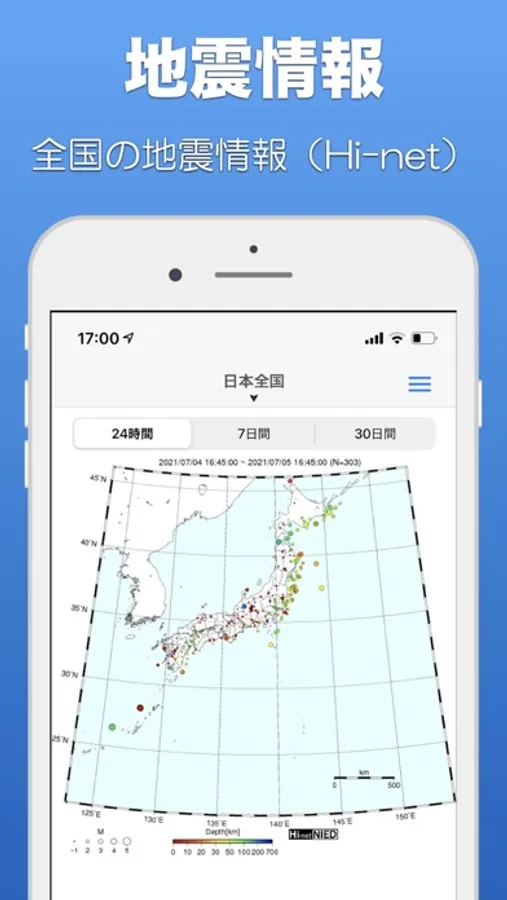 このアプリは独立行政法人防災科学技術研究所が提供している強震モニタを表示するものです。