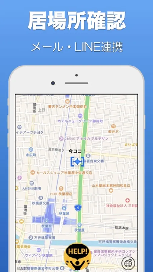 また、緊急時にSNS等で自分の現在地を連絡出来る機能「今ココ!」があります。