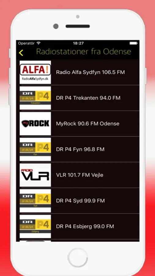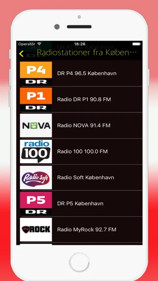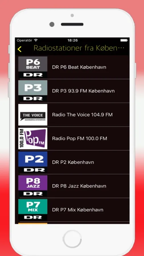 Dr P1, DR P2, DR P3, DR P4 Classic, DR, DR P5 P6 P7 Mix, Beat, DR DR P8 Jazz, Radio 100, The Voice, Skala FM, ANR Hit FM, go! FM, Nova FM, Radio Alpha, Pop FM, ...