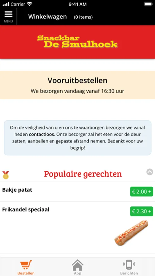 Download onze app en blijf op de hoogte van het laatste nieuws en de nieuwste acties, aanbiedingen en kortingen. Via onze app kunt u onze menukaart bekijken en direct vanaf uw telefoon uw bestelling plaatsen. U kunt via de app ook met iDEAL betalen!